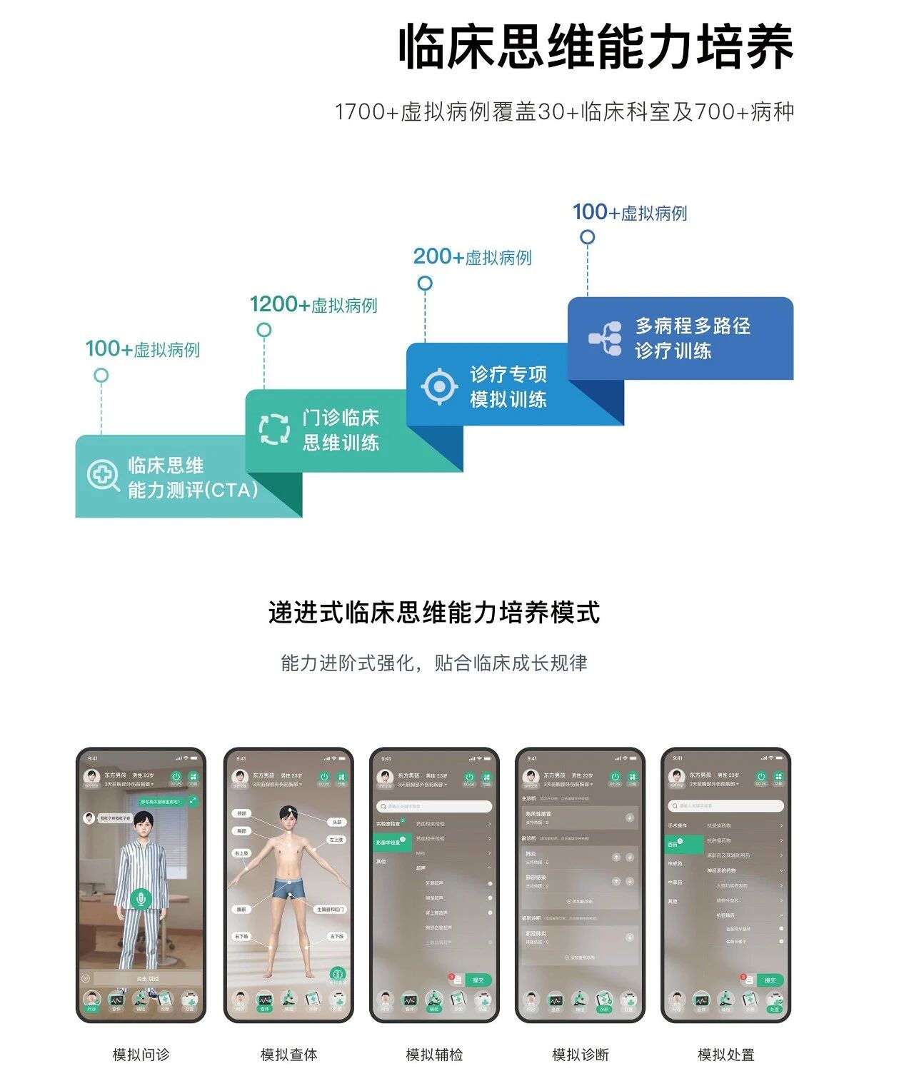 高阶层:多病程多路径训练:100+病例模拟“病情动态变化”(如术后感染、慢性病急性加重),训练“动态调整方案”的管床能力。